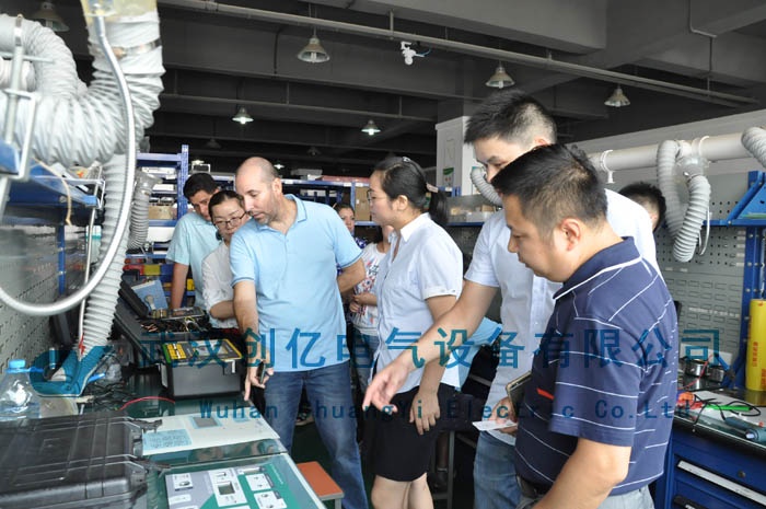 武漢最近酷熱難耐,氣溫一度飆升至40℃。就在這樣惡劣的天氣環境下,創億電氣迎來了巴拿馬的客戶來訪。本次一行三人的主要目的是為了學習CYPD-505便攜式局放巡檢測試儀的具體操作及原理。