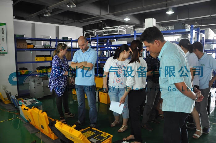 經過長達一個多小時的理論講解,然后帶領客戶參觀我司辦公室及車間,并介紹了許多相關設備??蛻魧Υ吮硎竞芨信d趣,并且學習了解了我司的智能回路測試儀以及互感器測試儀等設備。