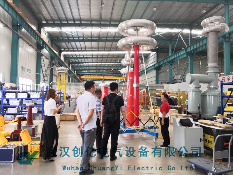 隨后,為了讓客戶充分了解我司的實力,一行人來到廠房車間參觀考察。在劉總逐一表述中,客戶對我司嚴謹的產品研發、規范的生產流程、專業的技術人員,到串聯諧振等相關四級承試資質設備都有了非常清晰的了解,并對我司的生產環境連連稱贊。