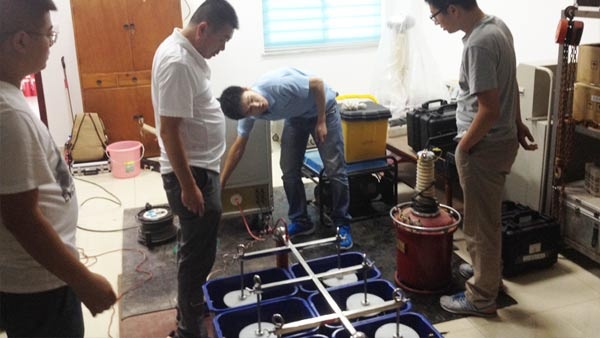 2014-08-21 山東馳戈電氣設備有限公司進行調試服務,調試產品:CYKC-12A 高壓開關動特性測試儀 CYJS-6A 絕緣靴手套耐壓泄露儀